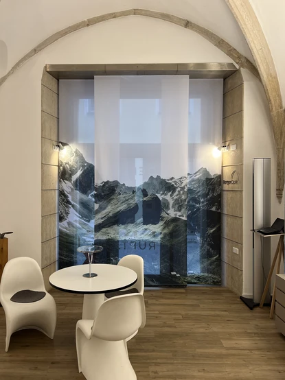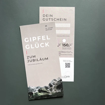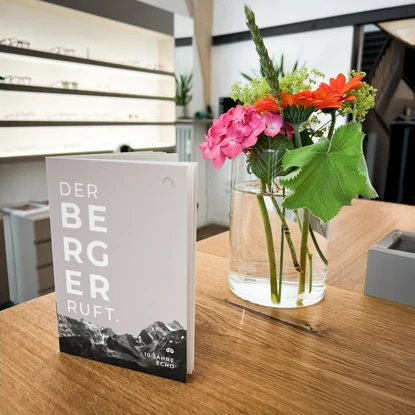 Im Jubiläumsjahr haben wir halbtransparentes Bergpanorama in die Fenster gezaubert. Und ein Lächeln in die Gesichter der vielen Besucher. Neben einem Gewinnspiel gab es eine „Trunk-Show“: Von dreien der aufregenden Brillen-Designer konnte man jeweils das komplette Sortiment in allen Größen und Farben ausprobieren. Was eine seltene Gelegenheit ist.