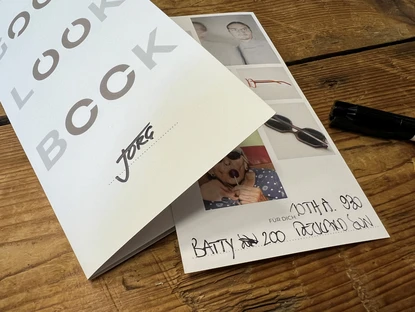 Wer sich für eine Brille bei Berger Optik interessiert, kriegt Empfehlungen, die außergewöhnlich sind und zur Persönlichkeit passen. Zu jedem Brillenhersteller gibt es spannende Geschichten, die wir auf Karten gesammelt haben. Und die mit der persönlichen Modell-Empfehlungen in einem eigenen Lookbook an Kunden übergeben werden. Print-Design vom Feinsten, sogar mit partiellem „Good Lack“.
