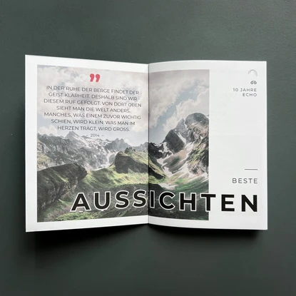 Seit der Firmengründung ging es steil bergauf und die Geschichte muss erzählt werden. Wir haben ein kleines Booklet entwickelt, das Stories liefert, die eine sympathische Bindung schaffen. Und die aus Interessenten neue Stammkunden machen.