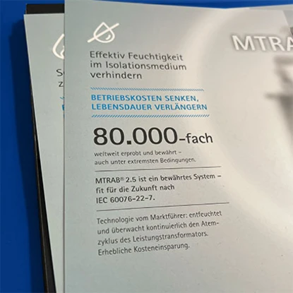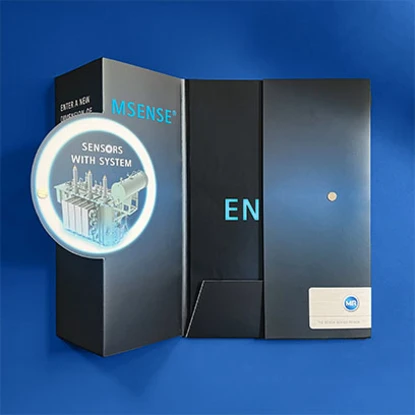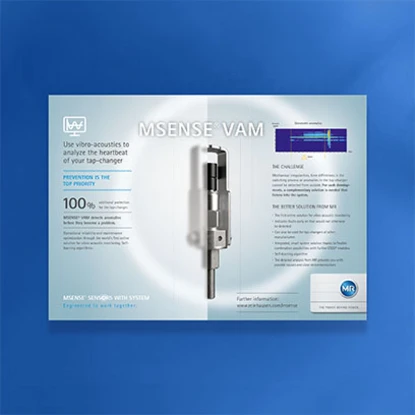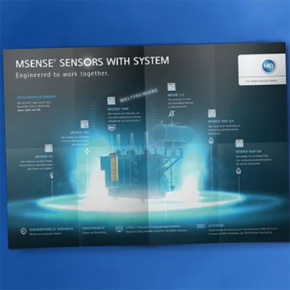 Auf Basis der Website wurden auch überraschende Unterlagen für das Vertriebsteam entwickelt: Die Mappe mit einem Übersichtsplakat zeigte alle Sensoren rund um den Transformator. Mithilfe eines QR-Codes wurde man direkt zum jeweiligen Produkt-Video verlinkt. Wertvolle Infos wurden so im Beratungsgespräch mit der stets aktuellen Website verknüpft präsentiert. Wenn man in entlegenen Orten nicht online gehen konnte, haben Infokarten die wesentlichen Vorteile herausgestellt.