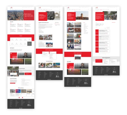 Im Zuge der Modernisierung der Website entwickelten wir ein mehrschichtiges UX-Konzept, um die bestehende Seite schrittweise zu modernisieren. Ohne dass die Onlineredaktion die Inhalte der Seite komplett neu einpflegen musste. Das Corporate Design der Stadt ist uns hinreichend bekannt, denn wir hatten es mit dem Logo-Relaunch für die Stadt mitentwickelt.