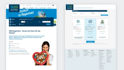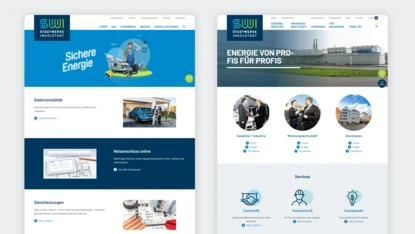 Auf Basis aufwändiger Analysen wie Heatmaps und einer Optimierung wie die der Core Web Vitals entstand eine durchdachte Website-Familie, die sich an Privat- wie Geschäftskund*innen richtet, die damit Angebote jetzt schneller erfassen können. An sich handelt es sich um 3 Websites in einer Installation (neben der SWI-Hauptseite auch Geschäftskunden und SWI-Netze). Frische Farben, eine intelligente Gliederung und die verbesserte Nutzerführung demonstrieren die Serviceorientierung der SWI ab jetzt auch im Web. Und natürlich entsprechen die Seiten auch den barrierefreien Web-Standards. Die Features: Fernwärmesuche, geschützte Kunden-Bereiche, Vorlagen von Landingpages in TYPO3, Integration von Erweiterungen wie Tarifrechner und Chat-Bot.
